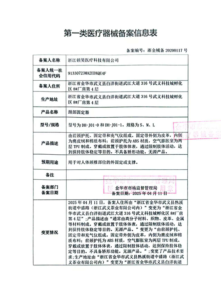 浙江頓昊醫療有限公司位于浙江溫泉之都——武義,是生產頸椎儀等醫療科技用品的專業廠家,其中現在生產的腰、頸椎儀成為國際國內眾多客戶首選產品。在經營中公司實行嚴格的質量管理,為使各類產品領先國內外市場 ,公司擁有先進設備及工藝;技術力量雄厚;檢測設備齊全;質保體系完善。產品出口世界各國,深受國內外客戶歡迎。 企業以質量第一,信譽至上為經營原則。以務實創新高效向上的企業精神,在企業發展的同時,竭誠希望與海內外客戶建立合作伙伴關系,共創繁榮!